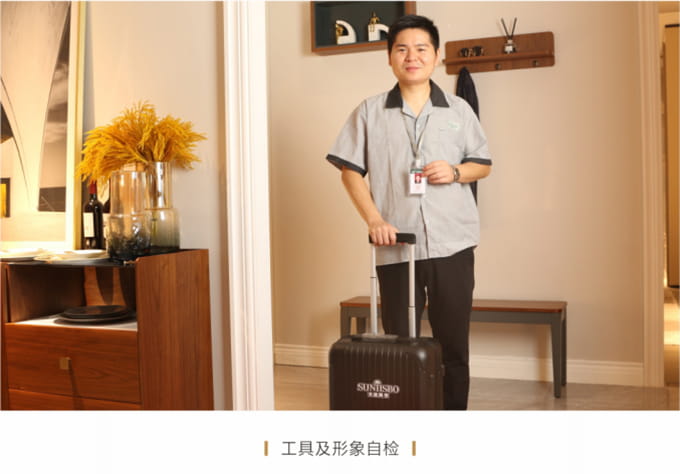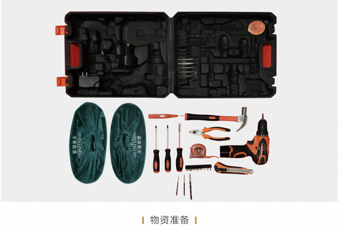 物资准备:上门前必须着米兰体育统一工作服,佩戴工作证,准备好安装工具、搬抬工具(搬运背带等)、备件、笔记本、手套、鞋套、地垫、卫生清扫工具(清洁剂、抹布、扫把簸箕、拖把、吸尘器等)、瓶装水、《米兰体育安装施工指示牌》、收据和米兰体育产品说明书、《产品配送单》和《配送满意度调查表》等物品。再带上小礼品,例:鲜花或碳包去味礼包等。