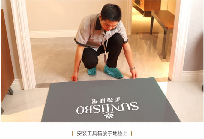 1、搬运之前现在客户家门前放置《米兰体育安装施工指示牌》,搬运和安装过程中避免发生碰撞和声响,控制说话声音以免惊扰客户家人或碰坏物品。送货安装服务人员在进入顾客家前,应穿上自备的鞋套。