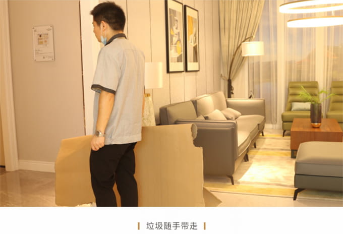 戴上白手套,按顾客要求把货物搬到指定位置,要求轻抬轻放,严禁在地板上拖、拉、推以免损伤顾客家物品。