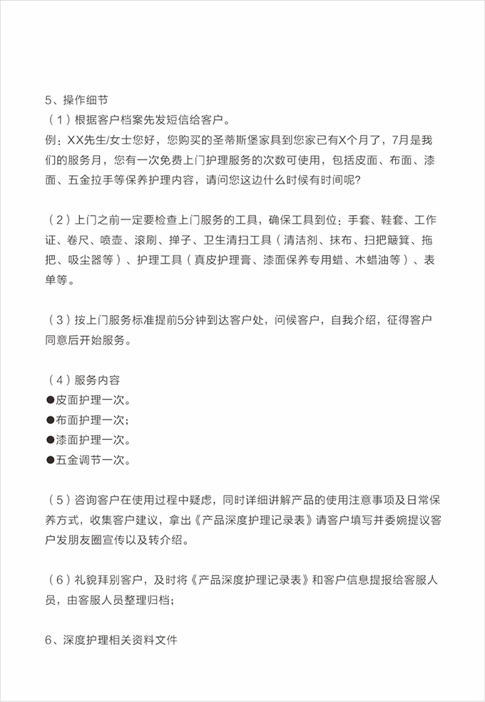 必须按照客户约定,至少提前5分钟上门,见到客户时需自我介绍,并出示上岗证和名片,在进入顾客家前应穿上自备的鞋套。征得客户同意后开始维修,严禁乱收费。